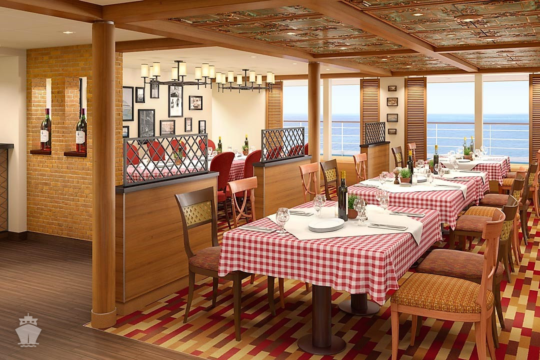 • Bufetová reštaurácia Lido Marketplace s Carnival Deli option, Pizzeria del Capitano, the á la carte Seafood Shack, e nový Swirls soft.