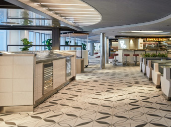 - The Galley: Fast Food Hala: burger gril, pekáreň, panini shop, taco shack, sushi bar, šalátový stánok, noodle bar, cukráreň