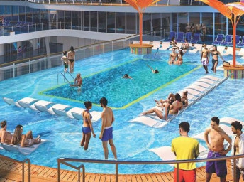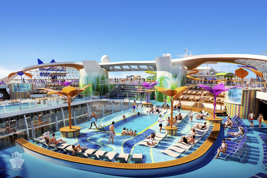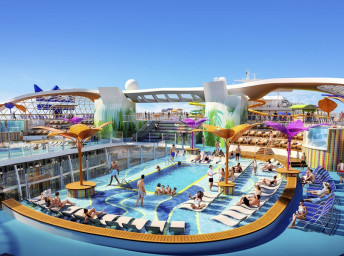 - Pool & Sports Zone: Táto štvrť je v znamení aktivity. Môžete tu surfovať na obľúbenom surfovom trenažéri FlowRider, nasávať slnečné lúče na lehátkach, močiť sa v bazénoch a vírivkách, spušťať na vodných toboganoch Perfect Storm, vznášať na 25 metrov dlhej lanovej dráhe nad promenádou Boardwalk alebo sa vydať na odvážnu 10-poschodovú jazdu šmykľavkou Ultimate Abyss. K dispozícii sú basketbalové a volejbalové ihriská alebo si môžete odpáliť loptičky na minigolfe.