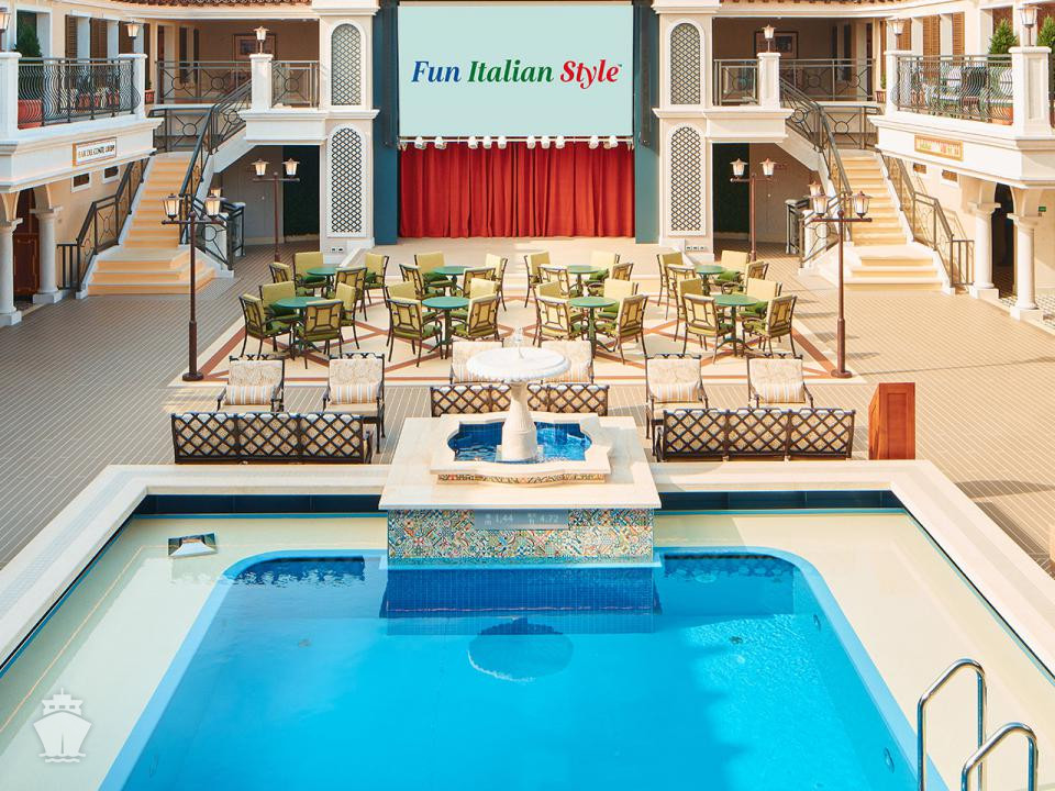 Átrium inšpirované Benátkami - Piazza San Marco, trojchodové reštaurácie Marco Polo a Canal Grande, La Strada Grill™ , či mexicko-talianske špeciality Tomodoro™ a Guy's Burger Joint (nové hamburgery s talianskou príchuťou).