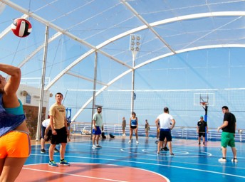 • Využívanie fitness centra, sauny, bežeckej dráhy, bazénov, víriviek, tobogánov a vodného parku (na vybraných lodiach), mini golf, basketbal, volejbal, stolný tenis, knižnica
