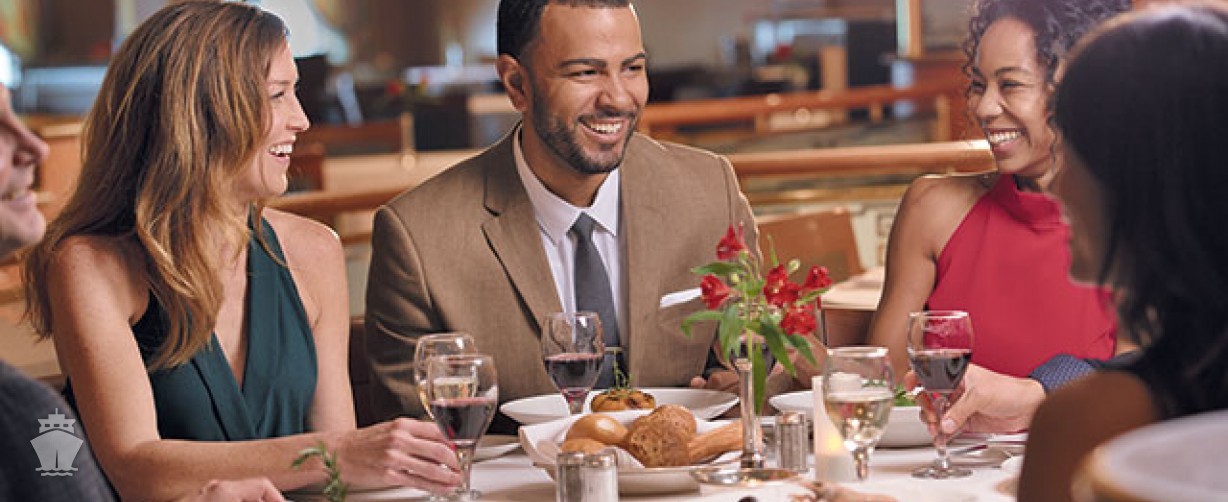 - Anytime Dining: Podobne ako v reštaurácia na pevnine, večerajte s kýmkoľvek podľa vášho priania, kedykoľvek v čase od 17:00 do 22:00.