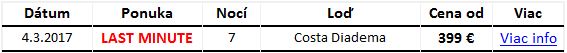 + horúce Last Minute ponuky od Costa Cruises.