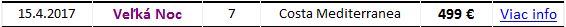 VEĽKÁ NOC A MÁJOVÉ SVIATKY s COSTA CROCIERE