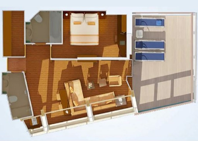 | OS - Ocean Suite 26 m² + balkón 6 m². 7. paluba stred, vpredu. Max 4 osoby. Výhody Suite. | 1 732 € 866 € za osobu |
