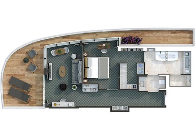 | O2 - Owner's 2 Suite 131 m² (vrátane balkóna 16 m²). 2 spálne, oddelená obývacia a jedálenská časť, kúpeľňa s vírivkou. Owners Suite O2 spojená s Premium Veranda Suite. 8. paluba - stred. Max 5 osôb. | 49 600 € 24 800 € za osobu |