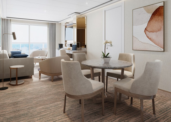 | SL - Silver Suite 1 spálňa 63 m² - 2 spálne 96 m² (vrátane balkóna 11-16 m²). 1 alebo 2 spálne, oddelená obývacia a jedálenská časť, kúpeľňa s vírivkou. 6,7,8. paluba, | 23 200 € 23 200 € za osobu |
