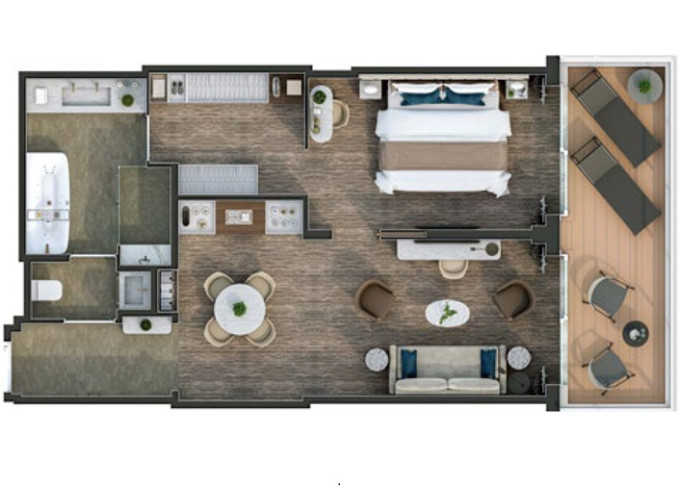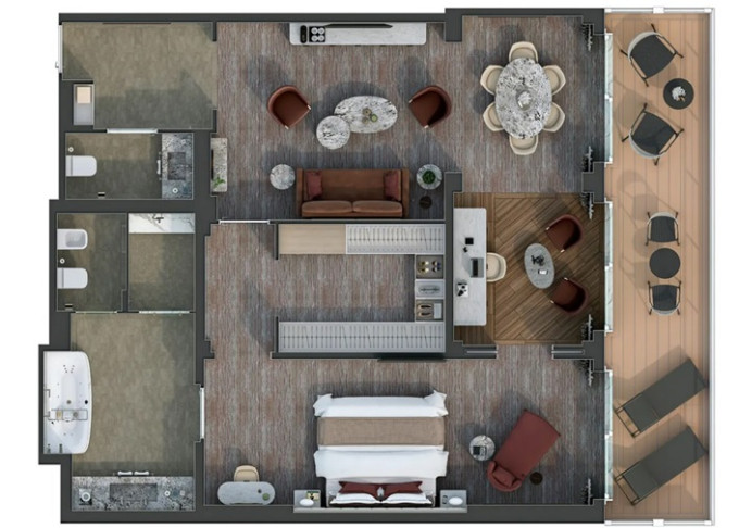 | J2 - Junior Grand 2 Suite 87-91 m² (vrátane balkóna 6 m²). 2 spálne, oddelená obývacia a jedálenská časť, kúpeľňa s vírivkou. Junior Grand Suite spojená s Classic Veranda Suite. 6 a 9. paluba vpredu. Max 5 osôb. | 34 200 € 34 200 € za osobu |