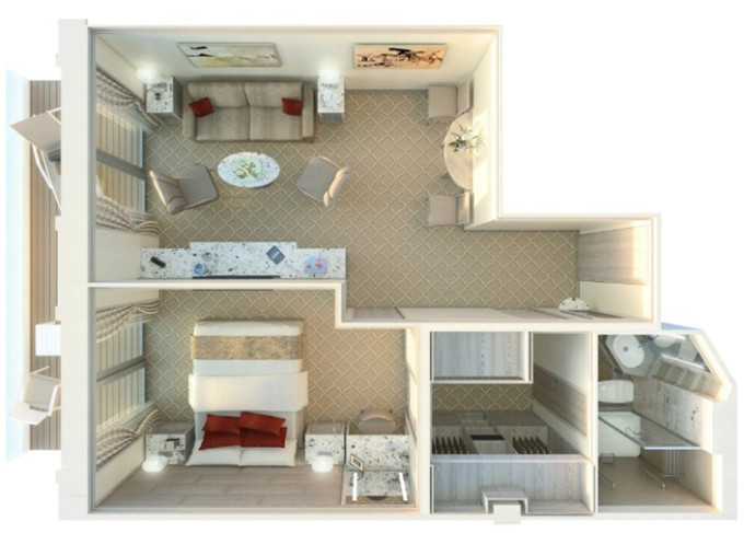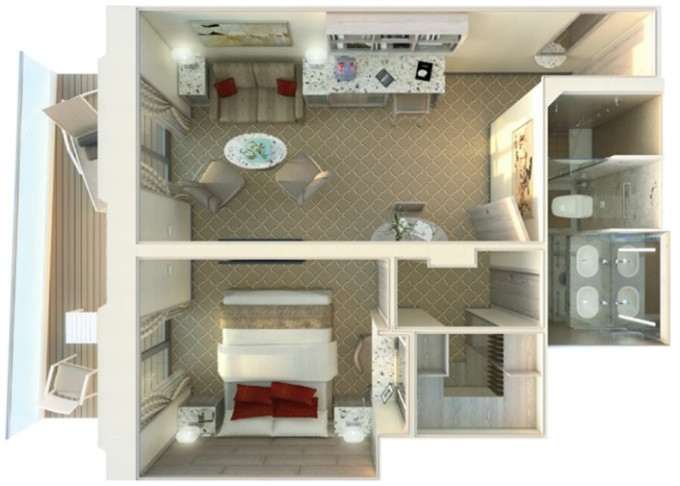 O1 - Owner's Suite 1 47 m² + balkón 8 m². 7. paluba stred. Max 3 osoby. 77 600 € 77 600 € za osobu