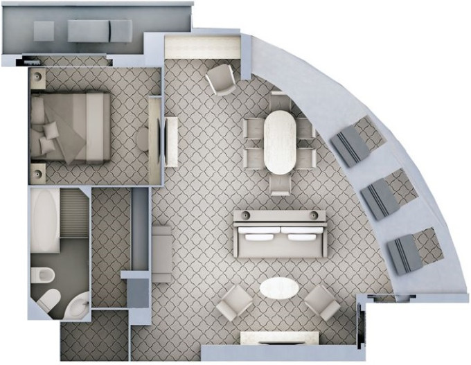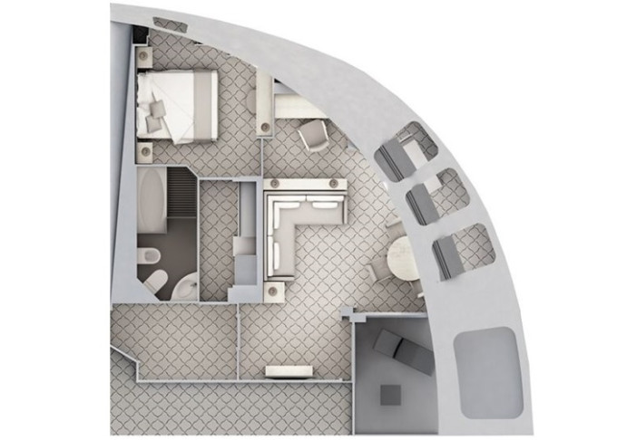 R2 - Royal Suite 2 79,5 m² + balkóny 16,5 m. Royal Suite R1 spojená s Veranda Suite. 6. paluba - vpredu. Max 5 osôb. 94 400 € 94 400 € za osobu