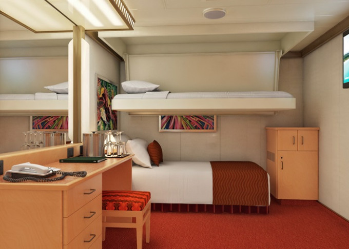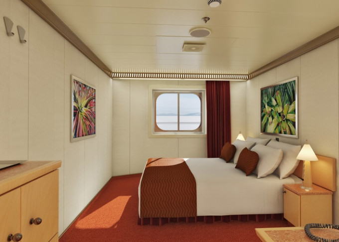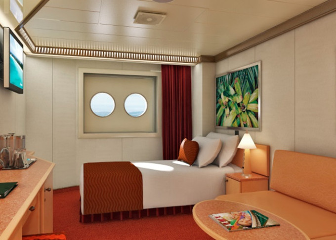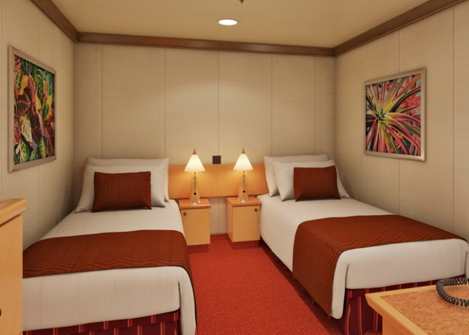Základné vybavenie všetkých kajút: kúpeľňa so sprchou a WC, TV s plochou obrazovkou, telefón, elektrická zásuvka 110 AC, regulovateľná klimatizácia, postele Carnival Comfort, sušič na vlasy, bezpečnostná schránka, mini chladnička (táto nie je vo všetkých kajutách).