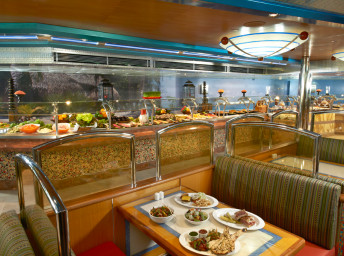 • Plná penzia v hlavných reštauráciách Main Dining Room, v bufetových 24/7 reštauráciách Lido, v 24/7 pizzerii