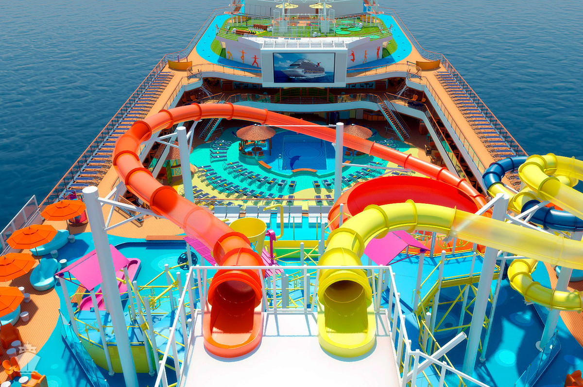 • Využívanie fitness centra, sauny, bežeckej dráhy, bazénov, víriviek, tobogánov a vodného parku (na vybraných lodiach), mini golf, basketbal, volejbal, stolný tenis, knižnica