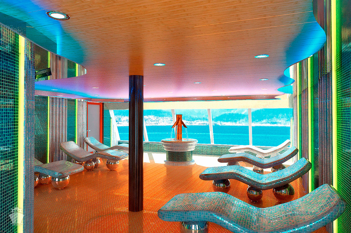 6S - Vonkajšia kajuta Cloud 9 Spa / obmedzený výhľad 20 m². Neotvárateľné okno / obmedzený výhľad. 11. paluba vpredu. Max 4 osoby. Voľný vstup do Spa a balíček Cloud 9 Spa. 786 € 393 € za osobu