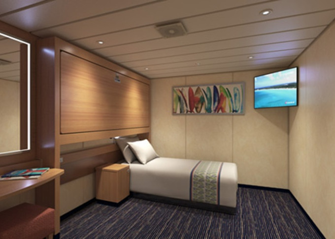 Základné vybavenie všetkých kajút: kúpeľňa so sprchou a WC, TV s plochou obrazovkou, telefón, elektrická zásuvka 110 AC, regulovateľná klimatizácia, postele Carnival Comfort, sušič na vlasy, bezpečnostná schránka, mini chladnička.