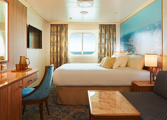 Kajuty Deluxe s výhľadom na oceán sú skvelou voľbou pre rodiny a neprekáža im obmedzený výhľad z okna. Samozrejmosťou je plne vybavená kúpeľňa a samostatná toaleta.