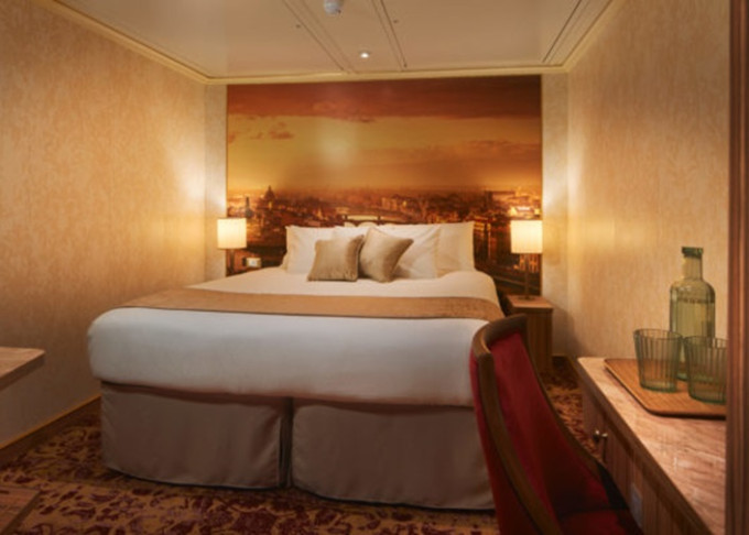 Útulná, klasická kajuta zdobená talianskym nádychom… plus benefit ako je exkluzívny prístup do vonkajšej oblasti Terrazza Carnevale.