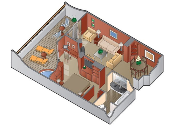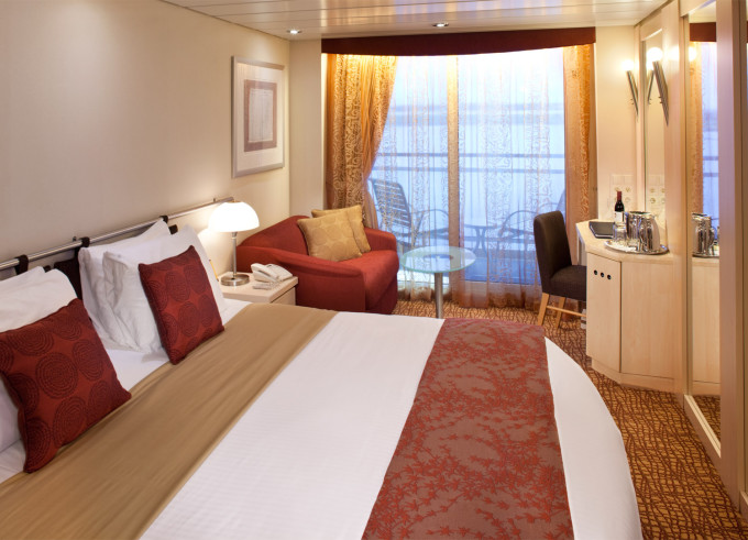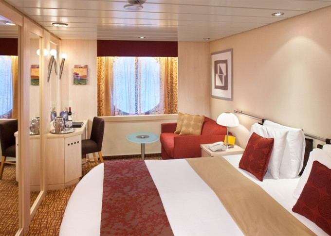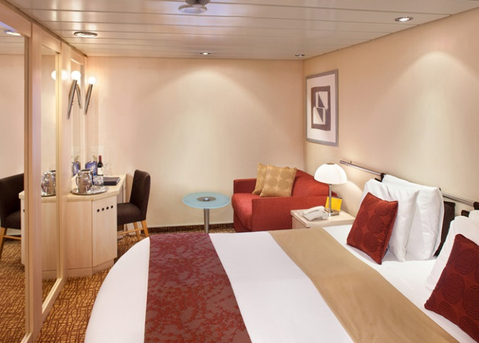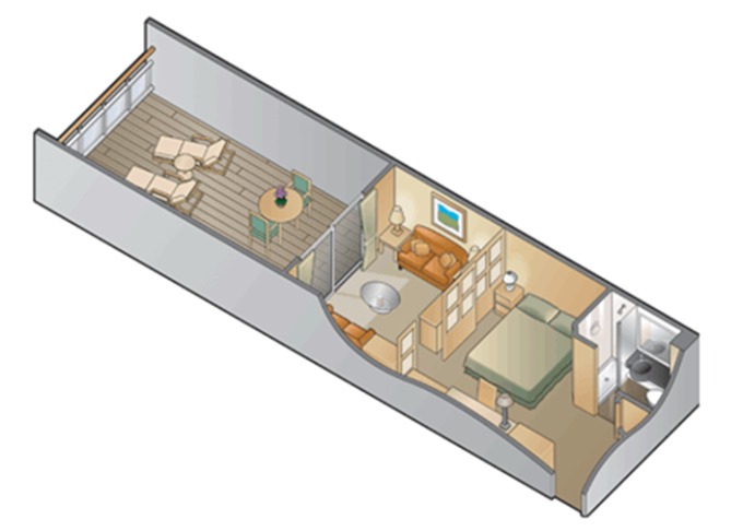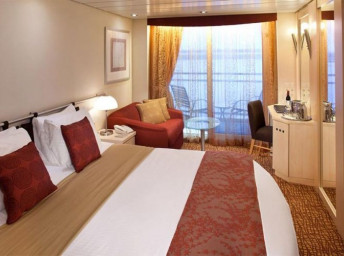 • Kajuty sú umiestnené v blízkosti lodného Spa. K ich vybaveniu patrí posilnený systém vzdušnej filtrácie, posteľ Queen-Size (v kategóriách Edge King-Size), veľké zasúvacie sklenené dvere, exkluzívne posteľné prádlo eXhale®, veľkorysé skladovacie priestory.