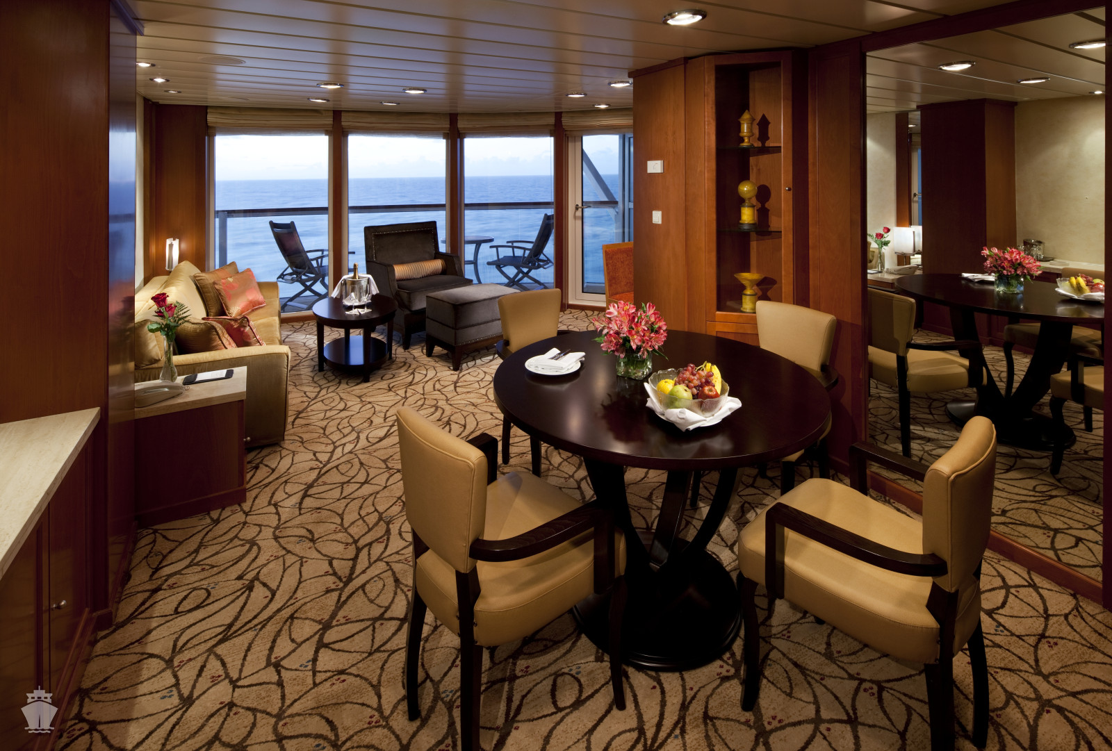 RS - Royal Suite 51 m² + balkón s vírivkou 18 m². Kúpeľňa s vírivkou. 6. paluba vzadu. Max 3 osoby. Výhody Suite The Retreat. 19 032 € 9 516 € za osobu