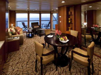 CS - Celebrity Suite 44 m² + balkón 8 m². Kúpeľňa s vírivkou. 6. až 9. paluba. Max 3 osoby. Výhody Suite The Retreat. 24 116 € 6 029 € za osobu