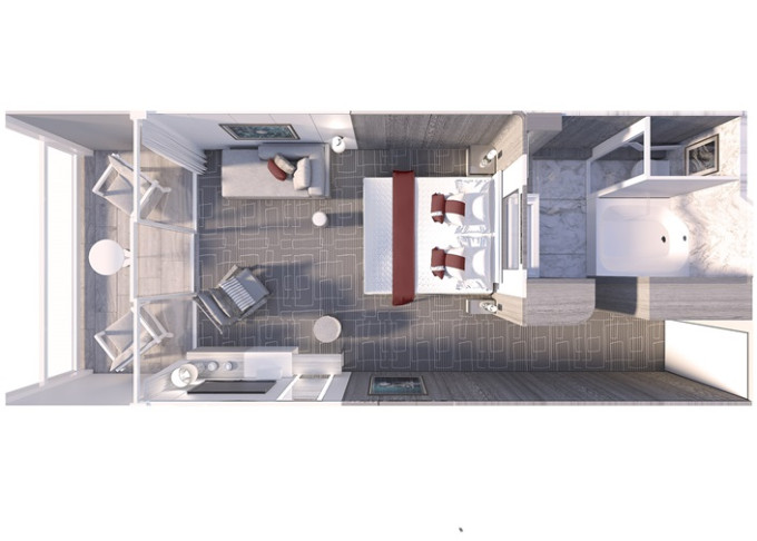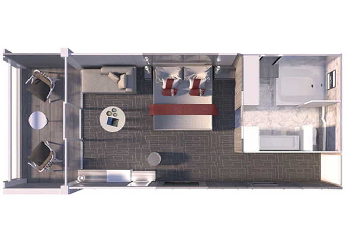 | E3 - Kajuta Edge s balkónom Infinite / obmedzený výhľad 18,5 m² + balkón Infinite 4 m² s obmedzeným výhľadom. 6. až 8. paluba. Max 2-4 osoby. | 2 479 € 2 479 € za osobu | ||