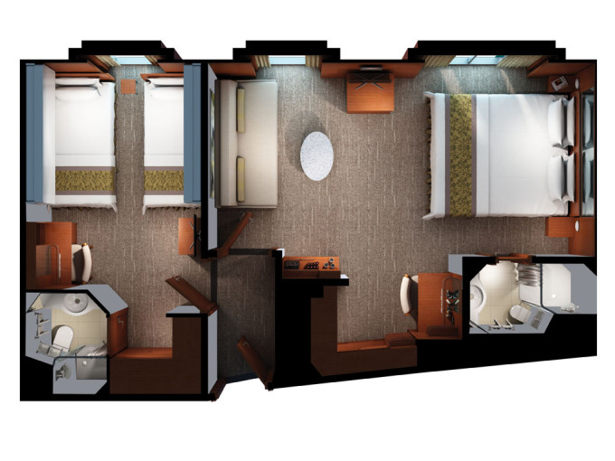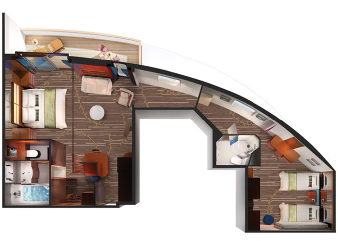 | S4 - Deluxe Family Suite od 56 m² / balkón 9 m². 9. paluba - vpredu. Max 5 osôb. Výhody Suite. | 18 198 € 9 099 € za osobu |