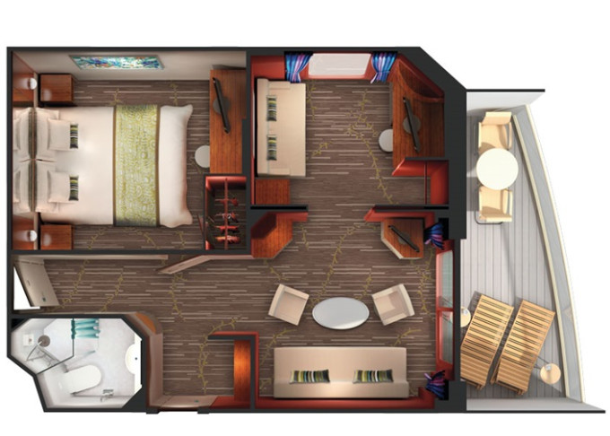 | SG -Family Suite Aft-Facing 31 m² / balkón 8 m². 7. až 10. paluba - vzadu. Max 3-6 osôb. Výhody Suite. | 11 594 € 5 797 € za osobu | ||