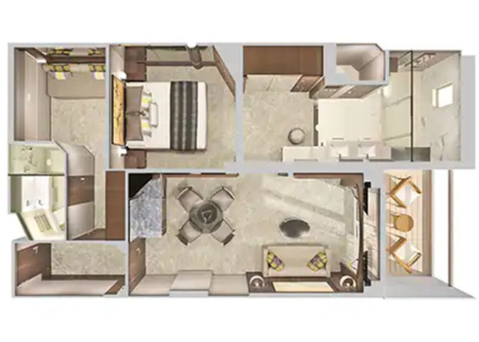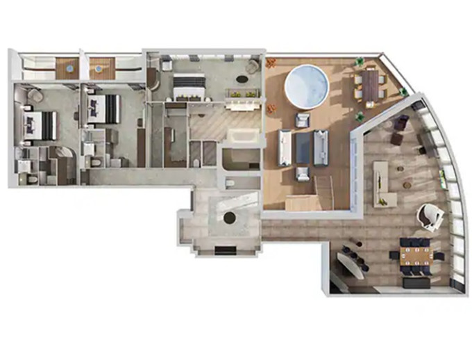 | H3 - The Haven Deluxe Owner's Suite 50-58 m² / balkón 4-12 m². 17. paluba - vpredu, stred. Max 6 osôb. Výhody The Haven. | 15 988 € 7 994 € za osobu |