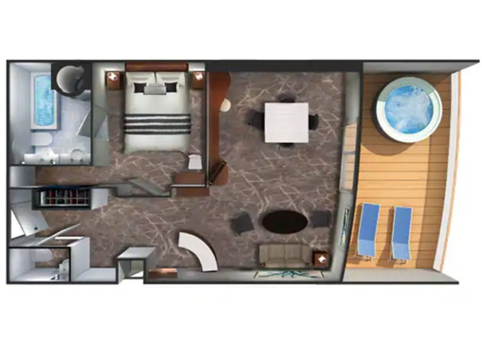 SA - Owner's Suite 77 m² / balkón 32 m². Vírivka. 8/9. paluba - vpredu. Max 5 osôb. Výhody Suite. 7 798 € 3 899 € za osobu