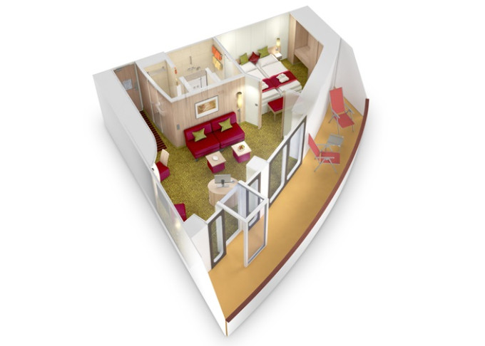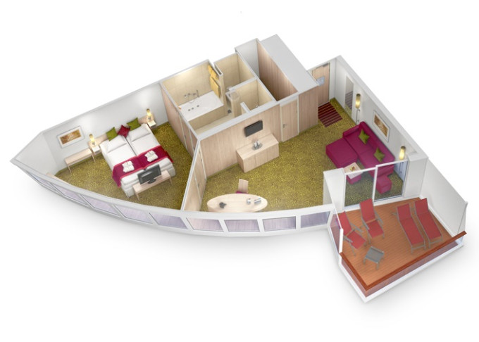 | SX - Suite Panorama Deluxe PREMIUM 42 m² + balkón 12 m². Vírivka. 12. paluba. Max 4 osoby. Cenový model Premium + výhody Suite. | 10 810 € 5 405 € za osobu |