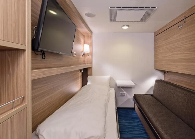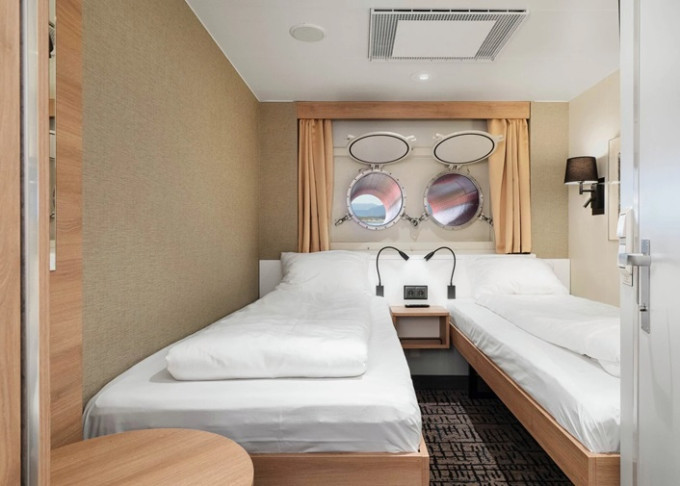 | L2 - Vonkajšia kajuta Polar / obmedzený výhľad 8-11 m². Neotvárateľné obló s obmedzeným výhľadom. Tv. Oddelené postele. Spodná paluba. Max 2 osoby. | 3 144 € 1 572 € za osobu | ||