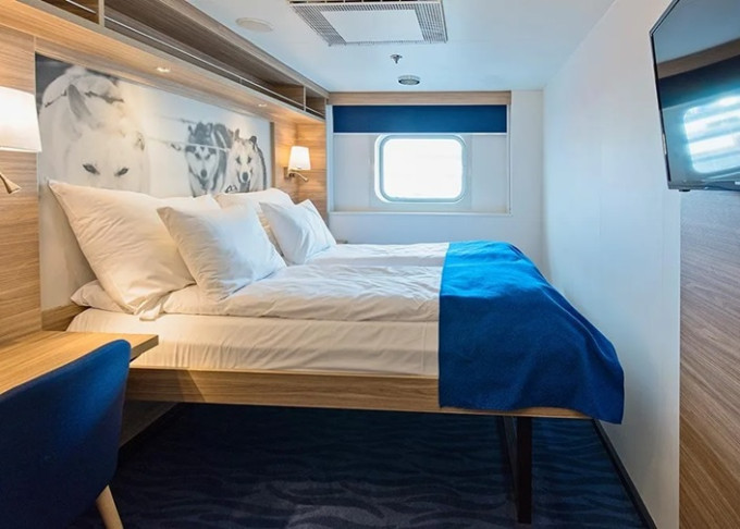 | U2D - Vonkajšia kajuta Arctic Superior 11 m². Neotvárateľné okno. Tv, varná kanvica. Manželská posteľ. Max 2 osoby. | 4 618 € 2 309 € za osobu | ||