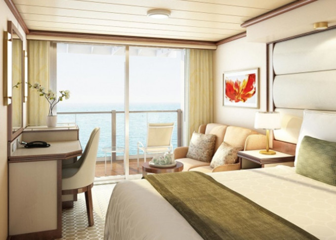 DA - Kajuta s balkónom Deluxe 21 m² (vrátane balkóna). Max 3 osoby (gauč). 3 290 € 1 645 € za osobu