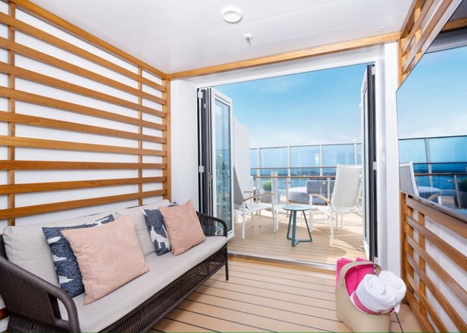 | C1 - Reserve Cabana Mini Suite 30 m² (vrátane 3 m² lounge a 3 m² balkónu).. 9. paluba. Výhody Reserve Collection a Výhody Mini Suite. | 3 740 € 1 870 € za osobu |