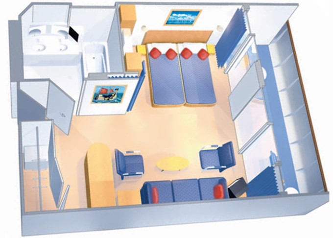 | 1K - Veľká vonkajšia kajuta Ultra Spacious 24,5 m². Neotvárateľné okno. Oddelená časť s poschodovou posteľou. Max 5-6 osôb. | 3 776 € 944 € za osobu | ||