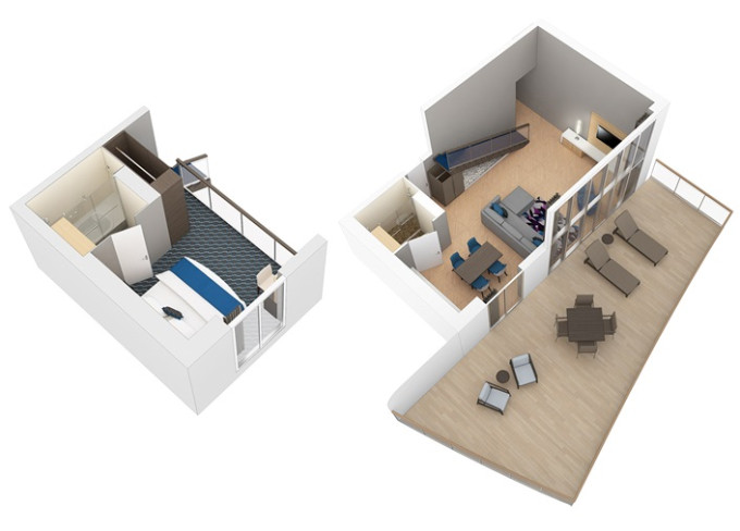 | L1 - Crown Loft Suite od 68,5 m² + balkón 13 m². 2-podlažný apartmán. 17. paluba. Max 4 osoby. Výhody Royal Suite Sky Class. | 11 170 € 11 170 € za osobu | ||