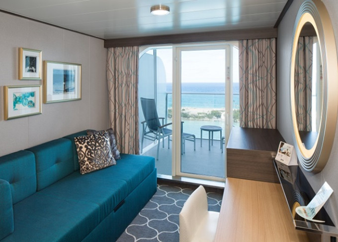 | J4 - Junior Suite s balkónom 26,5 m² + balkón 7,5 m². Max 5 osôb. Výhody Royal Suite Sea Class. | 8 908 € 8 908 € za osobu | ||