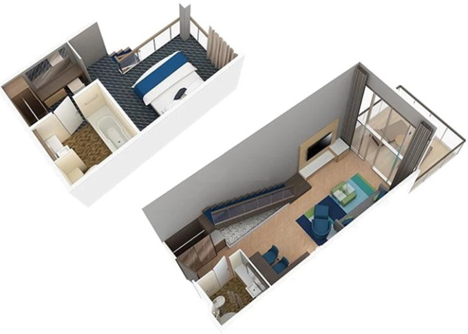 | L1 - Crown Loft Suite od 68,5 m² + balkón 13 m². 2-podlažný apartmán. 17. paluba. Max 4 osoby. Výhody Royal Suite Sky Class. | 11 346 € 5 673 € za osobu | ||