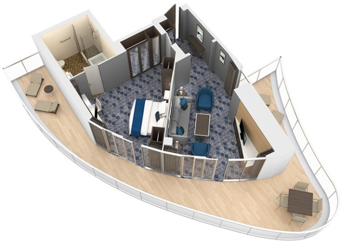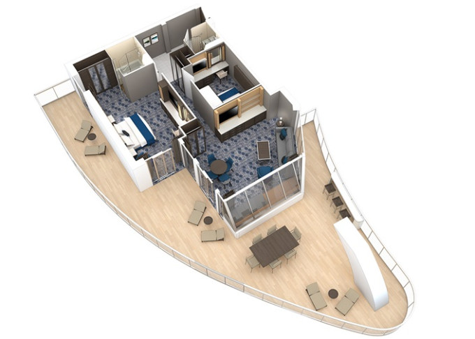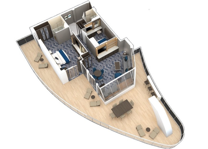 | A3 - Spacious AquaTheater 52 m² + balkón 55 m². Max 4 osoby. Výhody Royal Suite Sky Class. | 15 381 € 15 381 € za osobu | ||