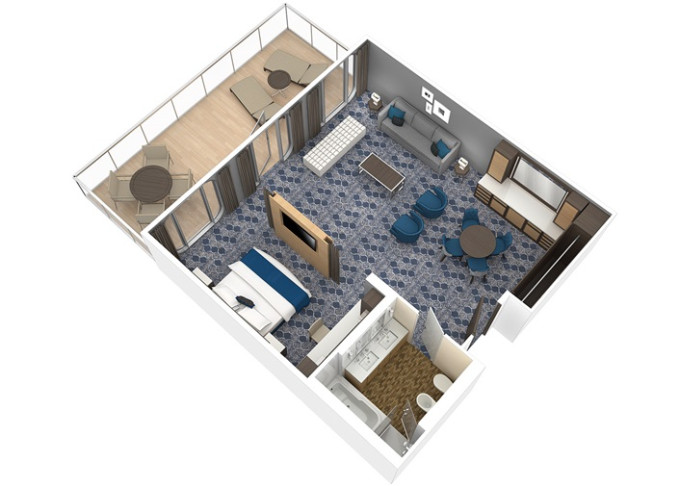 | J3 - Junior Suite s balkónom 26,5 m² + balkón 7,5 m². Max 4-5 osôb. Výhody Royal Suite Sky Class | 6 256 € 6 256 € za osobu |