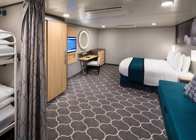 | 1A - Veľká kajuta s veľkým balkónom Ultra Spacious 25 m² + balkón 7,5 m². Oddelená časť s poschodovou posteľou. Max 6 osôb. | 4 821 € 4 821 € za osobu |