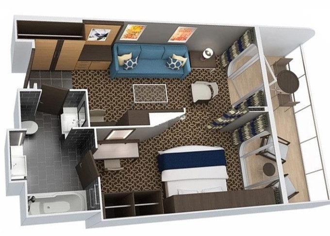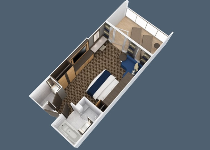 | 1U - Vnútorná kajuta s virtuálnym balkónom 15 m². Obrazovka veľkosti balkónových dverí s premietaným výhľadom. Centrálne umiestnenie. Max 3-4 osoby. | 3 076 € 769 € za osobu | ||