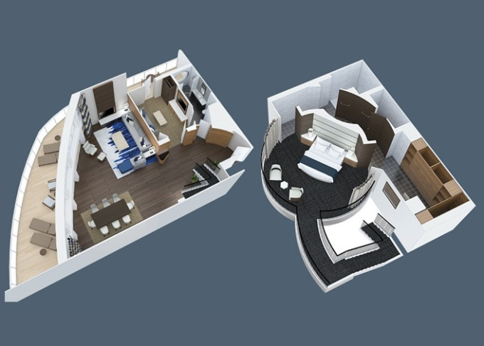 | OL - Owner Loft Suite s balkónom 90 m² + balkón 46 m². 2-podlažný apartmán. 8. paluba. Max 4 osoby. Výhody Royal Suite Star Class. | 10 077 € 3 359 € za osobu |