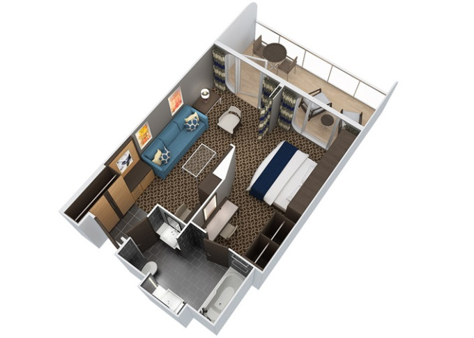 | J1 - Junior Suite s veľkým balkónom 25,5 m² + balkón 15 m². Max 2-4 osoby. Výhody Royal Suite Sea Class. | 5 562 € 1 854 € za osobu |