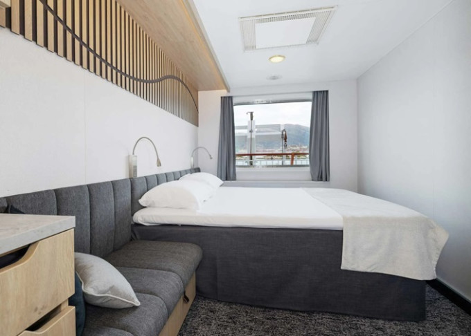 | QJ - Vonkajšia kajuta Arctic Superior / obmedzený výhľad 16-17 m². Neotvárateľné okno s obmedzeným výhľadom. Tv, varná kanvica. 5,6. paluba. Max 2 osoby. | 9 298 € 4 649 € za osobu | ||