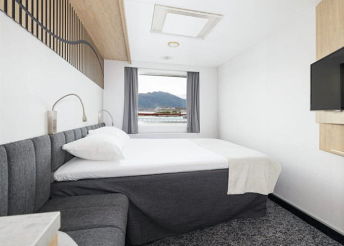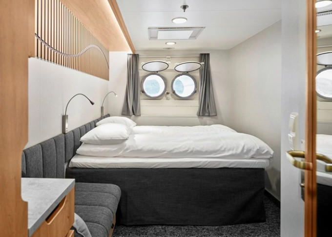 | P2 - Vonkajšia kajuta Arctic Superior 10-11 m². Neotvárateľné okno (môže byť obmedzený výhľad). Oddeliteľná manželská posteľ. Tv, varná kanvica. 5. paluba. Max 2 osoby. | 9 964 € 4 982 € za osobu | ||