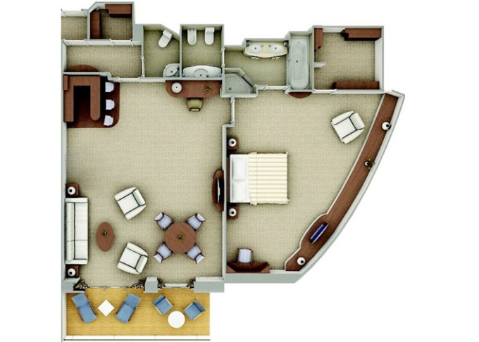 | DX - Deluxe Veranda Suite 26 m² + 6 m² balkón. 6,8,9. paluba stred. Max 3 osoby. | 23 400 € 23 400 € za osobu |