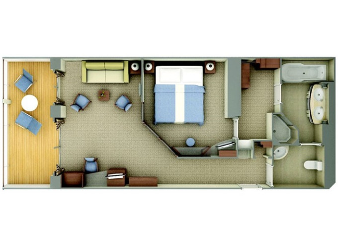| SV - Superior Veranda Suite 26 m² + 6 m² balkón.5. až 8. paluba. Max 3 osoby. | 22 800 € 22 800 € za osobu |