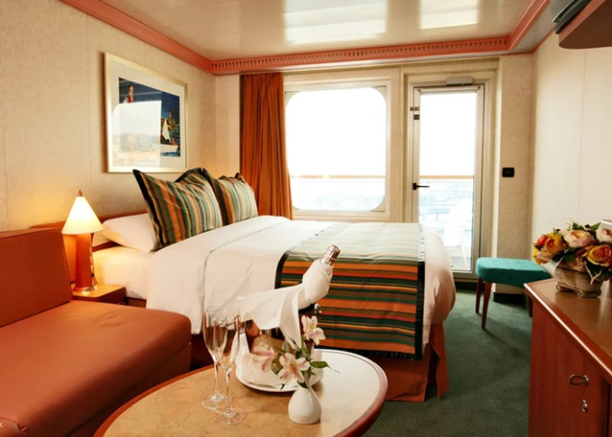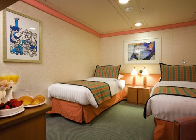 - Ubytovanie v kajute vybranej kategórie. Základné vybavenie: kúpeľňa s WC a sprchovacím kútom, 2 lôžka spojiteľné do manželskej postele, skrine, nočné stolíky, toaletný stolík a stolička, nastaviteľná klimatizácia, interaktívna satelitná TV s plochou obrazovkou, trezor, sušič na vlasy, uteráky a posteľné prádlo, Wi-Fi pripojenie (za poplatok), 24/7 kajutová služba (za poplatok).