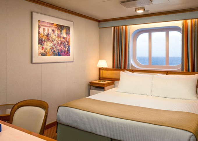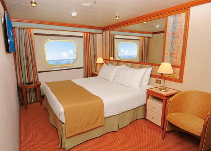 | OV - Vonkajšia kajuta / obmedzený výhľad 17 m². Neotvárateľné okno s obmedzeným výhľadom. Max 2-4 osoby (1-2 horné lôžka). | 6 180 € 3 090 € za osobu |